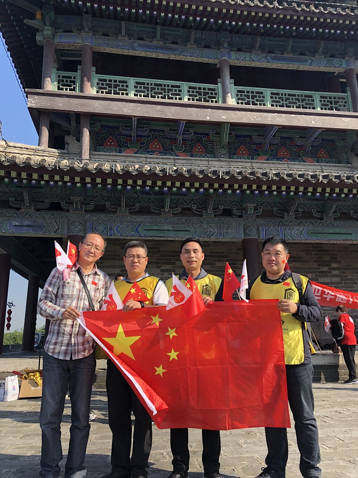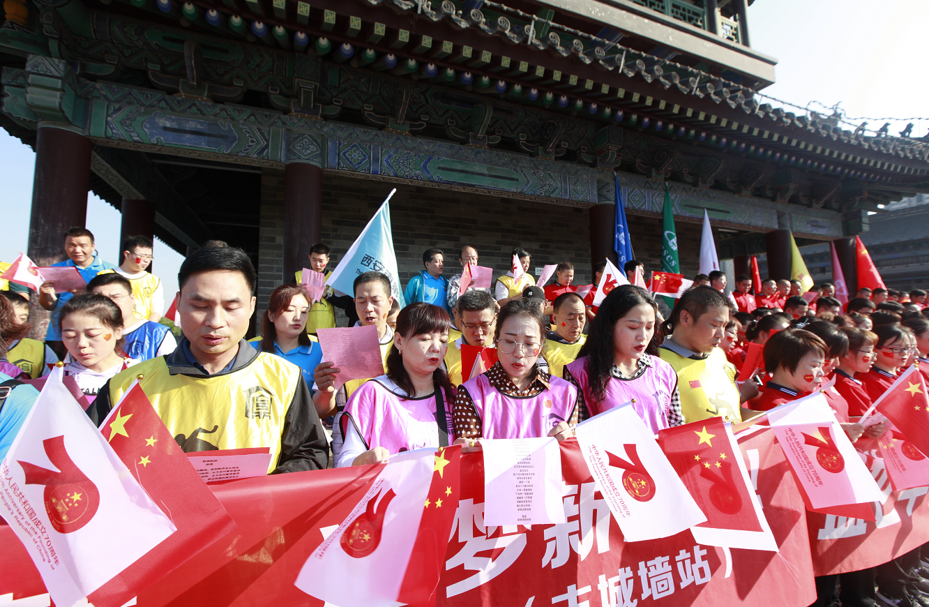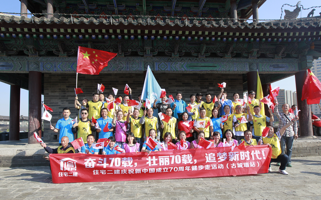 為慶祝中華人民共和國成立70周年,9月25日早上9:00住宅二攜手下屬基層單位陜西中盛建設(shè)科技服務(wù)有限公司共計(jì)130余人在西安古城墻上開展了系列慶?;顒?dòng),長樂坊所轄的八仙庵社區(qū)也參加了本次活動(dòng)。