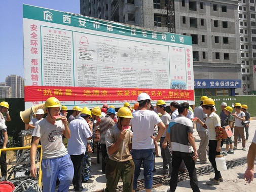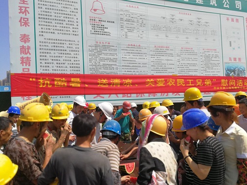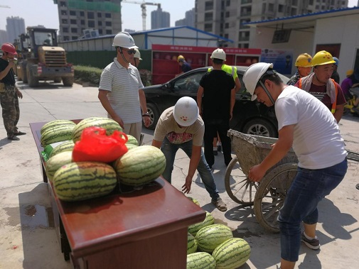 同時(shí)為進(jìn)一步推進(jìn)保障房項(xiàng)目文明施工管理,7月26日上午,公司黨委、工會(huì)、安委會(huì)再次對(duì)丈八路保障房項(xiàng)目開(kāi)展“送清涼·享關(guān)愛(ài)”防暑降溫慰問(wèn)活動(dòng)。將西瓜、綠豆、白糖等防暑降溫用品送達(dá)施工一線(xiàn)的工人手中,并叮囑大家一定要嚴(yán)格執(zhí)行高溫措施,注意勞逸結(jié)合和防暑降溫,切勿麻痹大意造成傷害。長(zhǎng)期身處一線(xiàn)職工對(duì)公司黨委、工會(huì)和安委會(huì)的關(guān)愛(ài)行動(dòng)表示感謝。